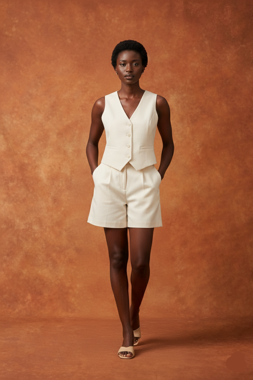 The Bottoms: Matching tailored shorts that hit above the knee.